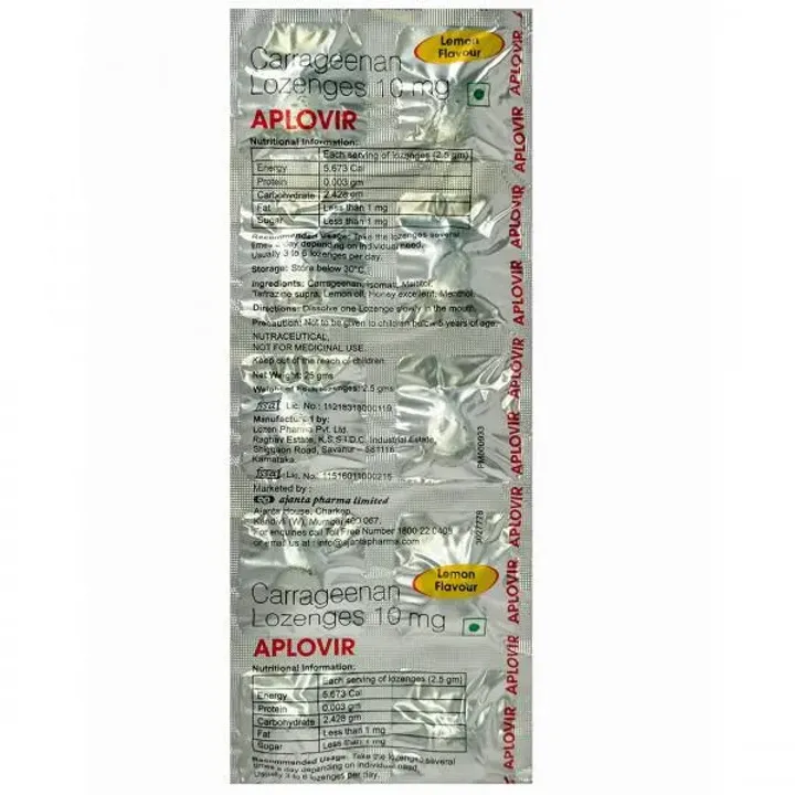 Aplovir Lozenges Lemon - High quality product. Not expired or damaged product.
