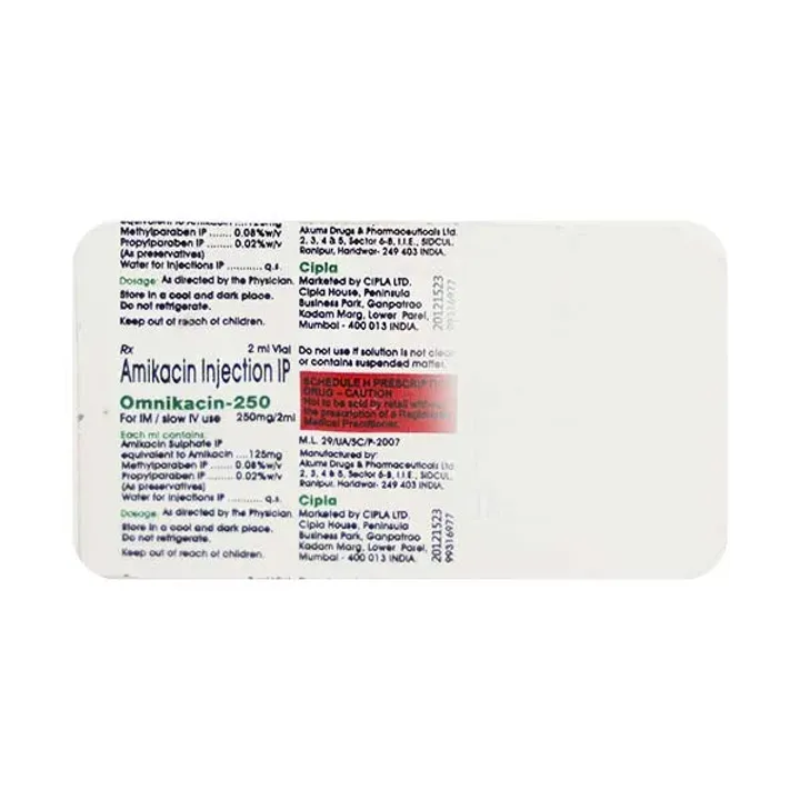 Omnikacin 250 Injection - High quality product. Not expired or damaged product.