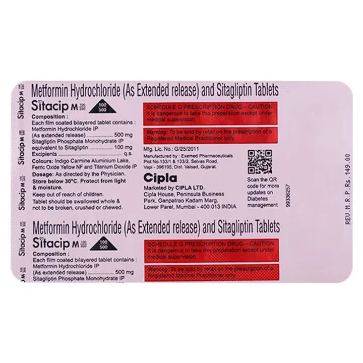 Sitacip M 100/500 Tablet - High quality product. Not expired or damaged product.