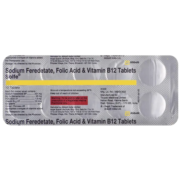 Sodium Feredetate (231mg), Folic Acid (1.5mg), Vitamin B12 (15mcg)