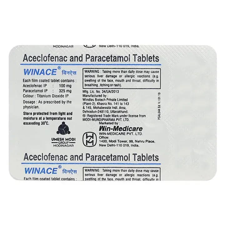 Aceclofenac (100mg), Paracetamol (325mg)